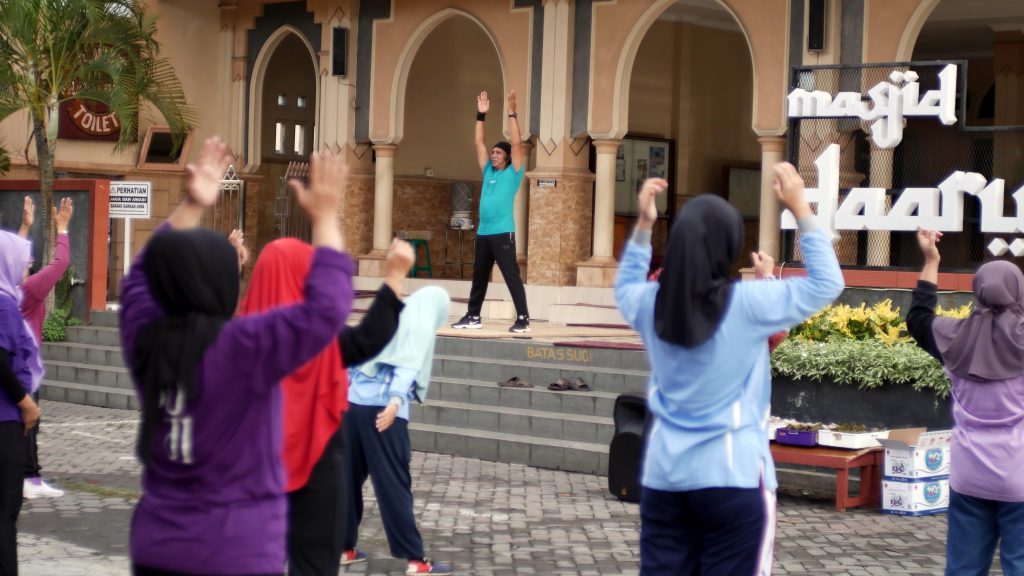 Suasana pagi yang cerah menambah semangat peserta Senam Sehat di Lapangan samping masjid Daarul Muttaqin Tlogosari, Kota Semarang. Acara yang berlangsung pada hari Minggu, tanggal 1 Desember 2024, kegiatan ini diadakan secara rutin oleh Masjid DM.