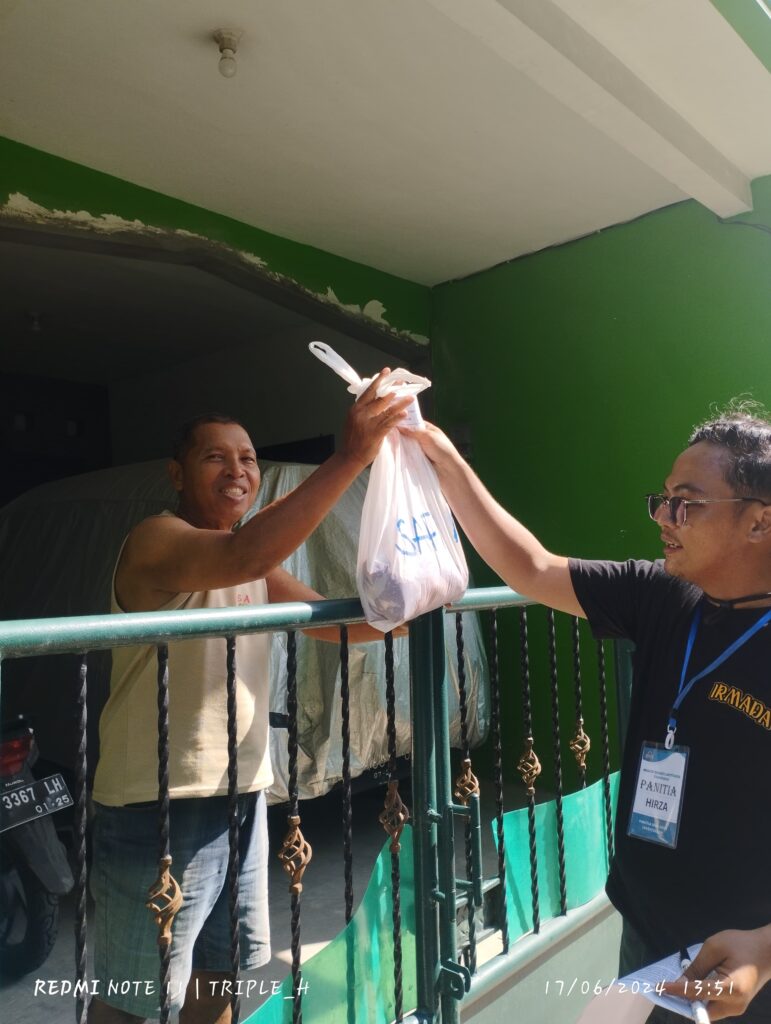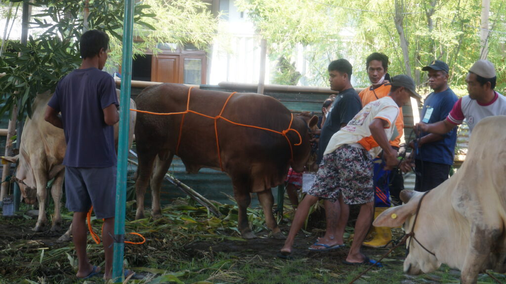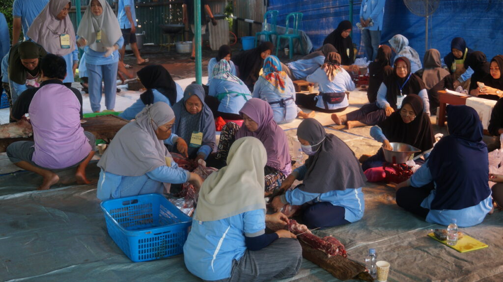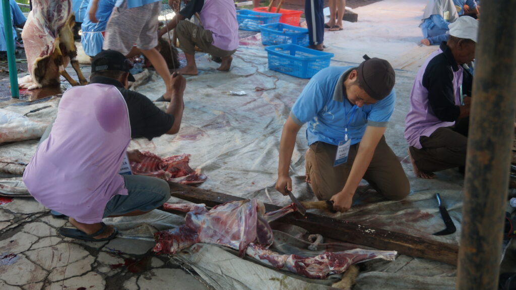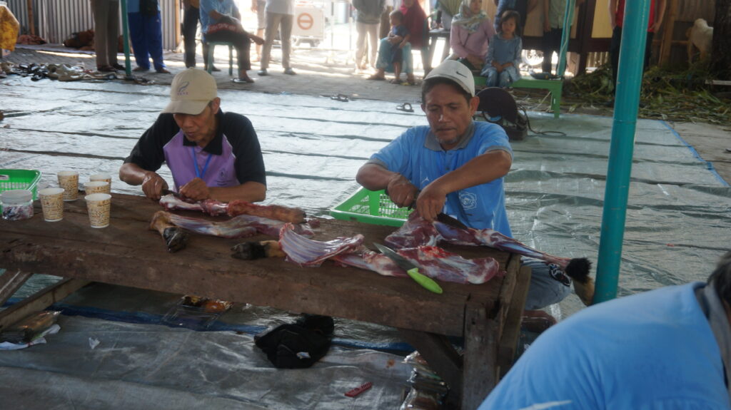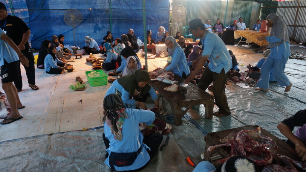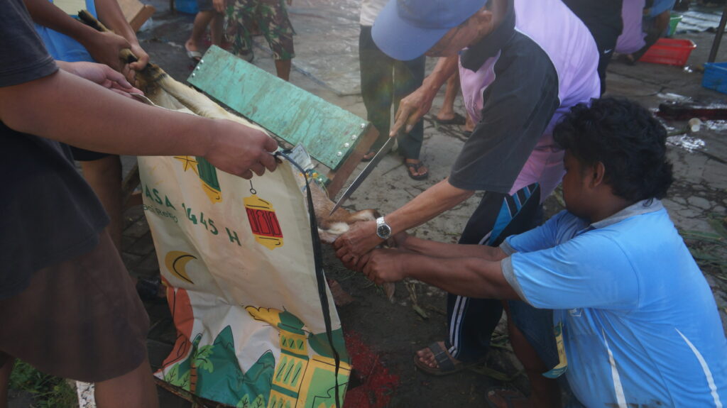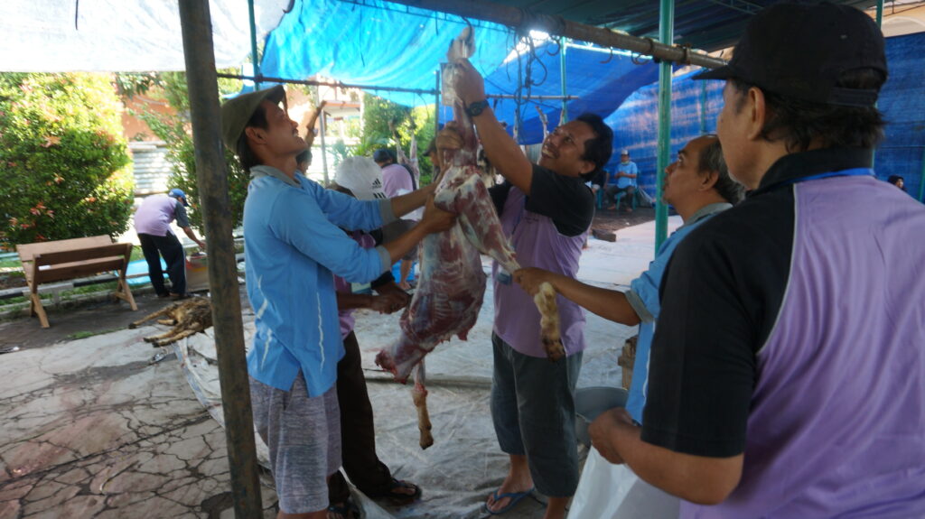Tepat pukul 08.00 WIB proses pemotongan dimulai dan selesai sampai pembagian kepada warga terselesaikan setelah shalat Dzuhur.